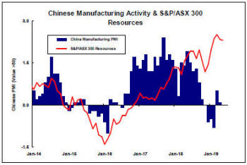 Chinese manufacturing had enjoyed a prolonged expansion since early 2017 which helped build positive sentiment for investments in the mining sector (as illustrated in the fourth chart in the right hand panel and the view below of the most recent five years).