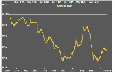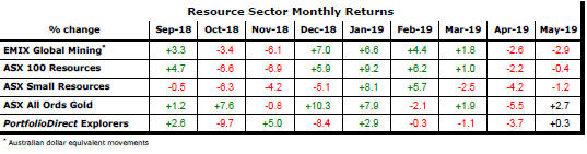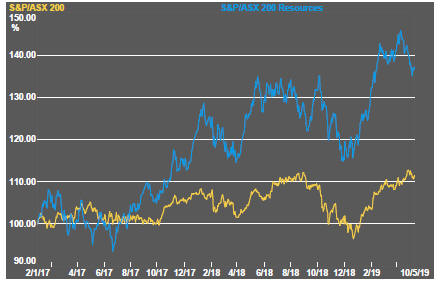 Resource stocks continued their decline as fears about global growth seem to have risen. Daily traded nonferrous metal prices continued their cyclical descent. Crude oil prices also turned lower as did uranium. Iron ore and coal prices remained relatively stable.