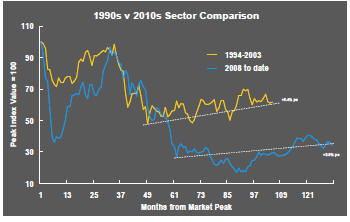 Relative stability in sector prices suggests a chance for individual companies genuinely adding value through development success to see their share prices move higher. This was the experience in the late 1990s and early 2000s.