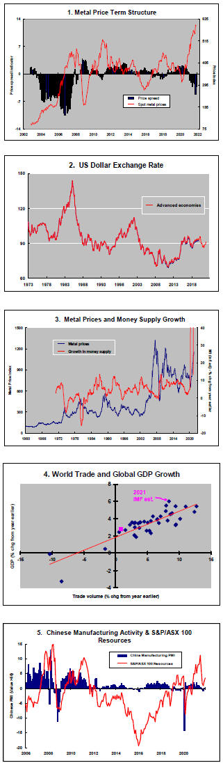 The greatest danger to a metal price cycle comes when monetary policy settings begin to tighten in response to higher inflation with an adverse effect on output growth and investment spending.