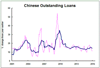 Loans outstanding in China at the end of December (reported on 1 March 2016)