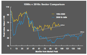 Relative stability in sector prices suggests a chance for individual companies genuinely adding value through development success to see their share prices move higher. This was the experience in the late 1990s and early 2000s.