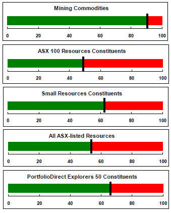With a median decline in prices of ASX-listed resources companies since the beginning of 2011 of 89% (and 30% of companies suffering a decline of more then 95%), the majority of stocks remain prone to strong 'bottom of the cycle' leverage in response to even slight improvements in conditions.