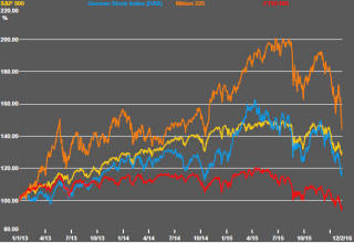 Pursuit of financial safe havens has also lent support to gold prices which have risen from as low as US$1060 at the end of December to over $1260/oz in the past week. The 5.5% gain in gold bullion prices over the past week was welcomed by gold miners. The Market Vectors Junior Gold Miners ETF added 14.2%. However, the net result leaves bullion prices within the downtrend which has been in place since 2012. At the end of the week, the gold price had shown insufficient momentum to break this barrier.