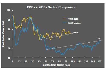 Relative stability in sector prices suggests a chance for individual companies genuinely adding value through development success to see their share prices move higher. This was the experience in the late 1990s and early 2000s.