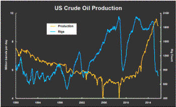 Short of joint action by producing nations, a rebalancing of the market will depend primarily on growing demand soaking up inventories. Falling US rig productivity as newer wells move past peak production combined with capital rationing placing limits on how many new wells begin production will eventually have an impact on the market adjustment. Until then, the energy sector will remain a drag on US equity market conditions.