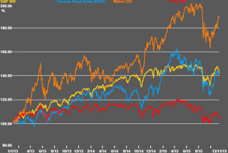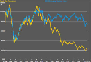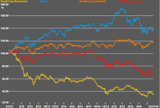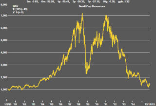 The natural resources sector as a whole remained in a price downtrend dating from early October. There was added pressure on sector indices as a result of the dam wall collapse at the Samarco iron ore mine in Brazil jointly owned by BHP Billiton and Vale. The S&P/ASX 100 resources index fell 9.1% after a 10.9% fall in the BHP Billiton share price. Australia’s small resources share price index fell 5.6%. The Euromoney Global Mining Index declined 6.0%. .