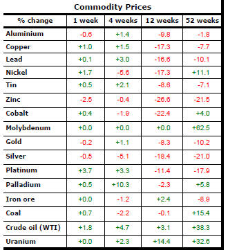 Resource sector related equity prices were edging higher by the end of the week although the directional bias remained negative.