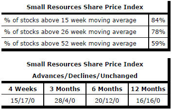 Resource sector outcomes have remained generally positive with the largest companies in the sector having picked up momentum over the past week. Among the smaller companies, sometimes large gains reflect bottom of the cycle leverage in relatively illiquid markets.