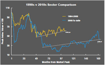 Relative stability in sector prices suggests a chance for individual companies genuinely adding value through development success to see their share prices move higher. This was the experience in the late 1990s and early 2000s.