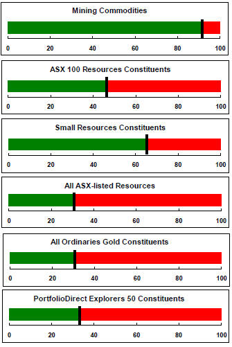 With a median decline in prices of ASX-listed resources companies since the beginning of 2011 of 89% (and 30% of companies suffering a decline of more then 95%), the majority of stocks remain prone to strong 'bottom of the cycle' leverage in response to even slight improvements in conditions.