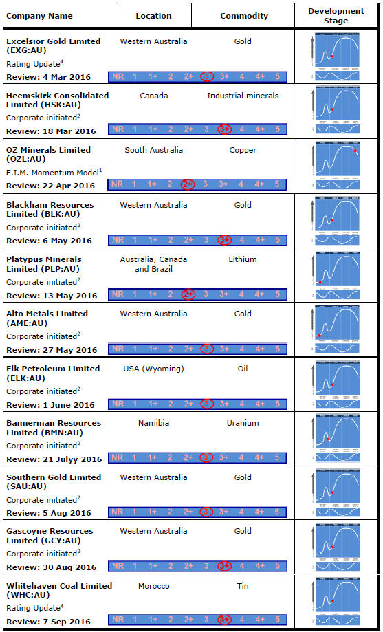 A company with a low rating may achieve better investment returns than a company with a higher rating. Among the reasons a company may receive a low rating are inadequate funding, operational shortcomings or generally inferior exploration interests. Companies in such positions can display very strong share price leverage to a change in their circumstances. Rating reviews will often highlight where this might be the case but a low rating is intended to signal that such changes, although possible, are uncertain or so ill-defined as to warrant significant investor caution.