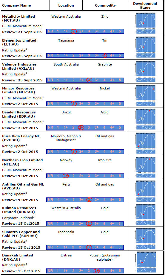 Stocks with relatively low ratings are regarded as more risky (i.e. less likely to achieve their exploration or development goals over a reasonable investment time horizon) than those with relatively high ratings.