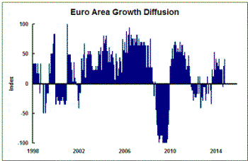 activity in Europe. This shows in the growth diffusion index based on the