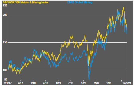 In the absence of a market force equivalent to the industrialisation of China, which precipitated an upward break in prices in the early 2000s, a moderate upward drift in sector equity prices over the medium term is likely to persist.