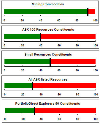 With a median decline in prices of ASX-listed resources companies since the beginning of 2011 of 89% (and 30% of companies suffering a decline of more then 95%), the majority of stocks remain prone to strong 'bottom of the cycle' leverage in response to even slight improvements in conditions.