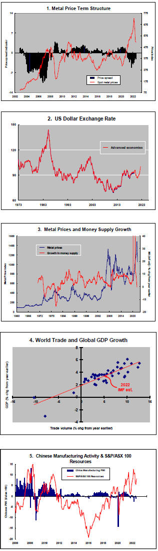 The greatest danger to a metal price cycle comes when monetary policy settings begin to tighten in response to higher inflation with an adverse effect on output growth and investment spending.