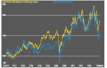 In the absence of a market force equivalent to the industrialisation of China, which precipitated an upward break in prices in the early 2000s, a moderate upward drift in sector equity prices over the medium term is likely to persist.