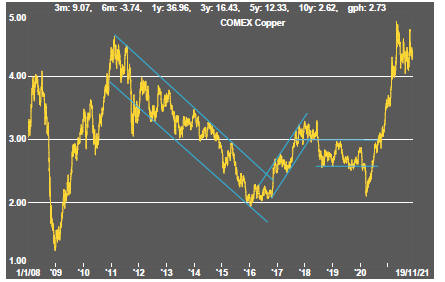 In the absence of a market force equivalent to the industrialisation of China, which precipitated an upward break in prices in the early 2000s, a moderate upward drift in sector equity prices over the medium term is likely to persist.