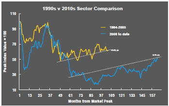 Relative stability in sector prices suggests a chance for individual companies genuinely adding value through development success to see their share prices move higher. This was the experience in the late 1990s and early 2000s.