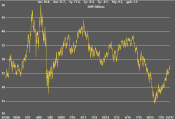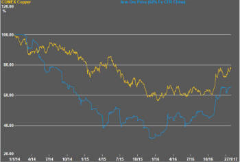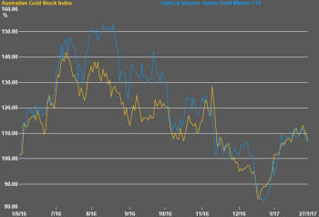 Both copper and iron ore prices have lost momentum after their earlier 'Trump-related' gains. Higher copper and iron ore prices are particularly significant as they feed into the share prices of the market leaders in the sector. The indices in which the leaders are given the highest weights declined slightly in the week.