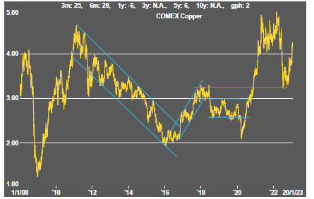 In the absence of a market force equivalent to the industrialisation of China, which precipitated an upward break in prices in the early 2000s, a moderate upward drift in sector equity prices over the medium term is likely to persist.