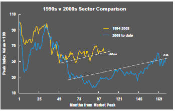 Relative stability in sector prices suggests a chance for individual companies genuinely adding value through development success to see their share prices move higher. This was the experience in the late 1990s and early 2000s.