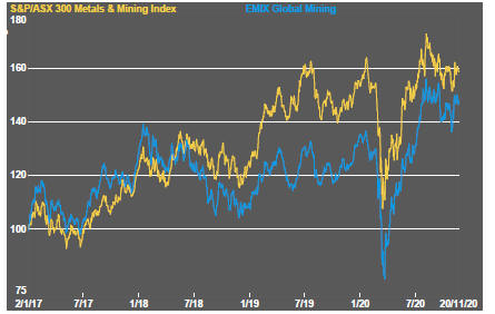In the absence of a market force equivalent to the industrialisation of China, which precipitated an upward break in prices in the early 2000s, a moderate upward drift in sector equity prices over the medium term is likely to persist.