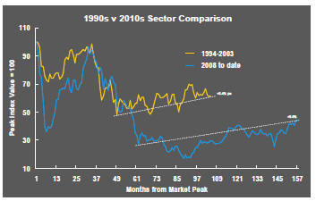 Relative stability in sector prices suggests a chance for individual companies genuinely adding value through development success to see their share prices move higher. This was the experience in the late 1990s and early 2000s.