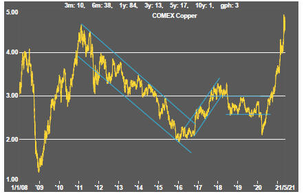In the absence of a market force equivalent to the industrialisation of China, which precipitated an upward break in prices in the early 2000s, a moderate upward drift in sector equity prices over the medium term is likely to persist.
