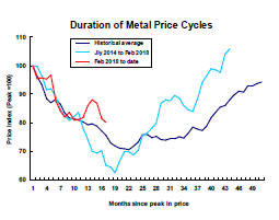 Time, of itself, is not important but the sequence of adjustments which are typical of a commodity price cycle and contribute to changed prices and expectations does take time. A more detailed analysis of metal price cyclical duration is available here.