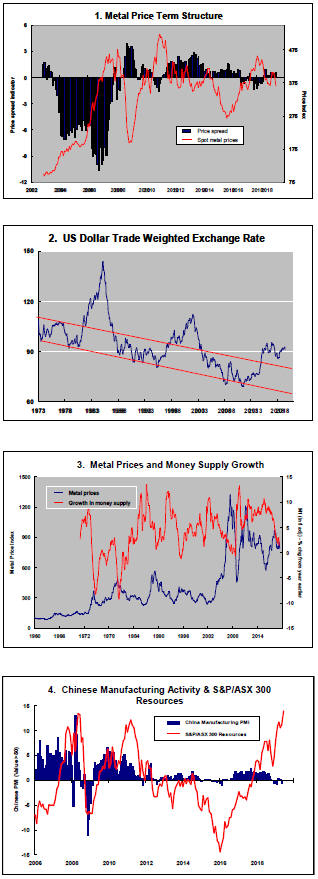 The greatest danger to a metal price cycle comes when monetary policy settings begin to tighten in response to higher inflation with an adverse effect on output growth and investment spending.