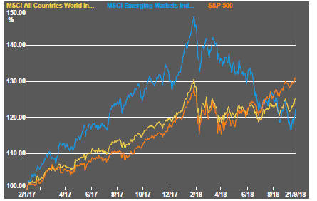 Equity markets were generally higher as anxieties over trade policies diminished and, among developing economy markets, fears over slumping exchange rates subsided.