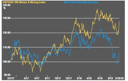 The market leaders made strong gains globally with the merger of Barrick Gold and Randgold adding to interest within the gold sector amid speculation about other potential takeover targets.