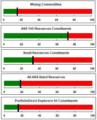 With a median decline in prices of ASX-listed resources companies through the cycle of 89%(and 30% of companies suffering a decline of more then 95%), the majority of stocks remain prone to strong 'bottom of the cycle' leverage in response to even slight improvements in conditions.