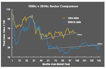 Relative stability in sector prices suggests a chance for individual companies genuinely adding value through development success to see their share prices move higher. This was the experience in the late 1990s and early 2000s.