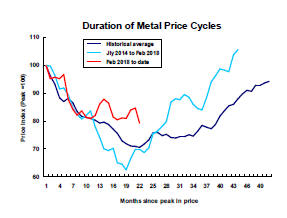 Time, of itself, is not important but the sequence of adjustments which are typical of a commodity price cycle and contribute to changed prices and expectations does take time. A more detailed analysis of metal price cyclical duration is available here.
