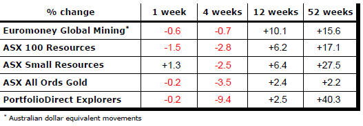 The prices of Australian gold related stocks have moved within a narrower range than their north American counterparts.