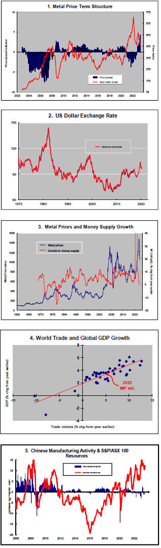 The greatest danger to a metal price cycle comes when monetary policy settings begin to tighten in response to higher inflation with an adverse effect on output growth and investment spending.