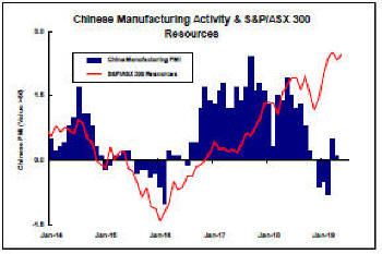 Chinese manufacturing had enjoyed a prolonged expansion since early 2017 which helped build positive sentiment for investments in the mining sector (as illustrated in the fourth chart in the right hand panel and the view below of the most recent five years).