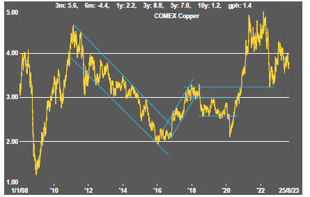 In the absence of a market force equivalent to the industrialisation of China, which precipitated an upward break in prices in the early 2000s, a moderate upward drift in sector equity prices over the medium term is likely to persist.
