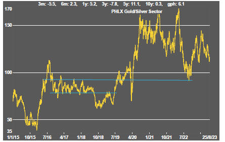 Still vulnerable cyclical conditions were aggravated in the second half of 2015 by a push from investors worldwide to reduce risk. Sector prices were pushed to a new cyclical low some 90 months after the cyclical peak in sector equity prices but these conditions were reversed through 2016 and 2017 as global growth accelerated although, for the most part, sector prices did little more than revert to 2013 levels which had once been regarded as cyclically weak.