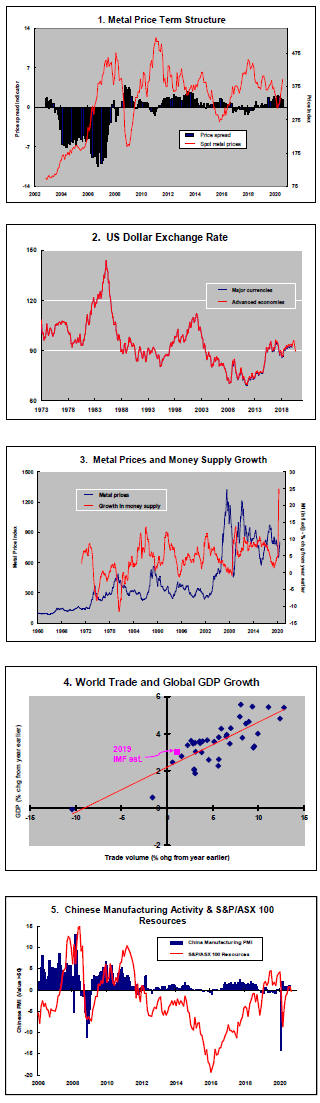 The greatest danger to a metal price cycle comes when monetary policy settings begin to tighten in response to higher inflation with an adverse effect on output growth and investment spending.