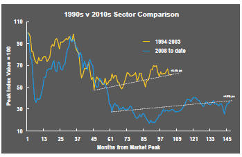Relative stability in sector prices suggests a chance for individual companies genuinely adding value through development success to see their share prices move higher. This was the experience in the late 1990s and early 2000s.