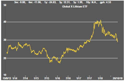 Movements in lithium related equity prices had been aligned more closely with overall sector equity prices in recent weeks with the lithium stocks tending to display a greater leverage to changes in market sentiment about the mining sector.
