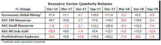 The performance of Australian listed mining companies, which had been relatively strong, deteriorated sharply although the Australian sector has retained most of the relative performance gains made over the past year.