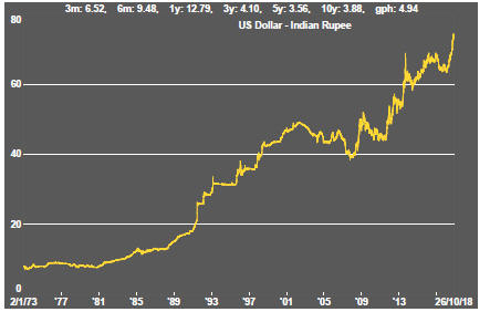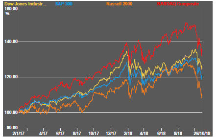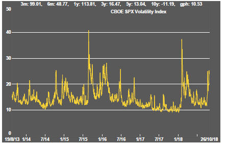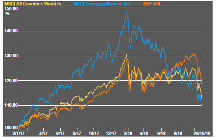 The equity sell-off gathered force during the week punctuated by strong intraday swings in prices. The emerging market index reverted to levels touched in the first quarter of 2017 as other markets gave up the gains which had been made during 2018.
