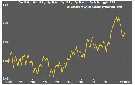 US stock holdings continue to rise impacting the structure of WTI futures prices.
