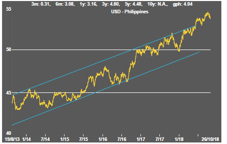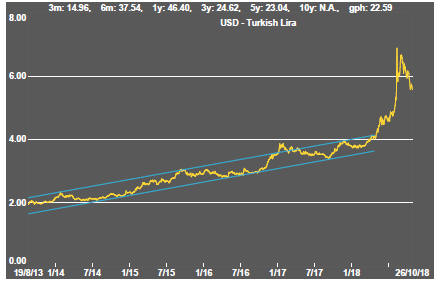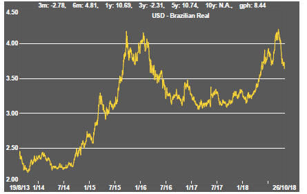 The deterioration in emerging market currencies has become less pronounced although the Indian and Chinese currencies are still caught in conspicuously weakening trends, as is the Australian dollar. The Chinese move relates, in part, to the Sino-US trade dispute. For India, political uncertainty in the run up to state and national elections is a factor. Election results in Brazil, where a conservative has been elected president, have raised expectations of a crackdown on corruption and support for more business oriented policies.