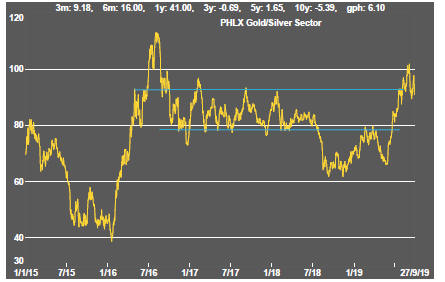 Still vulnerable cyclical conditions were aggravated in the second half of 2015 by a push from investors worldwide to reduce risk. Sector prices were pushed to a new cyclical low some 90 months after the cyclical peak in sector equity prices but these conditions were reversed through 2016 and 2017 although, for the most part, sector prices have done little more than revert to the 2013 levels which had once been regarded as cyclically weak.